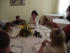 Penktadienį gimnazijos mokytojai rinkosi Technologijų cente į Velykines amatų dirbtuvėles ir vašku margino kiaušinius, dažė paruoštais juodalksnio nuoviro dažais „gelžūniais“.