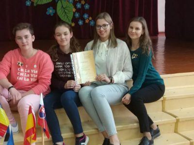 Rugsėjo 26 dieną mūsų gimnazijos merginų komanda dalyvavo Skaudvilės gimnazijoje vykusiame respublikiniame renginyje „Europos kalbų dienos protmūšis“. Mūsų gimnazijai atstovavo Ib klasės mokinės Dora Heynold ir Karolina Augustytė bei Saulė Maleckaitė ir Karolina Indrulytė iš IIId klasės. Iš viso renginyje dalyvavo trylika komandų iš Tauragės, Raseinių ir Kelmės rajonų pagrindinių mokyklų, progimnazijų ir gimnazijų. Kiekvienoje komandoje buvo po keturis dalyvius. Susirinkusius į protų mūšį dalyvius pasveikino Skaudvilės gimnazijos direktorius Nerijus Jocys ir jo pavaduotoja Ligita Visockienė. Renginį pradėjo Skaudvilės kultūros namų folkloro ansamblis.